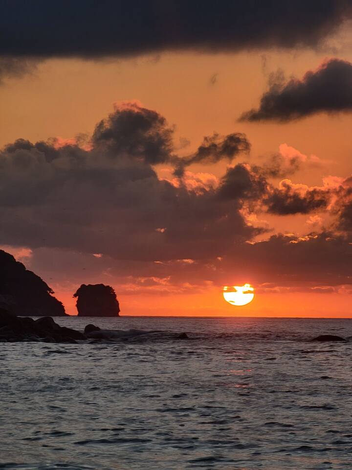Casa Xula offers exclusive, direct access to the peaceful Playa Gemelas, known for its soft sand and clear water. Enjoy two balconies - one off the second-floor master with ocean views, and another on the main floor with lush surroundings and ocean breeze. Inside, you'll find a newly renovated, fully equipped kitchen and open indoor-outdoor living space. Fall asleep to the soothing sound of waves, and for the ultimate rest, pull the blackout curtains and unwind on cozy beds.